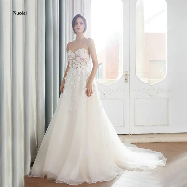 Boho Wedding Dress 2018 Long Appliques Spaghetti Straps Floral Beach Wedding Gown Tulle Bridal Dresses Open Back robe de mariage