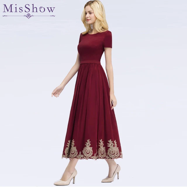 New burgundy Cocktail Dresses with short Sleeve tea Length Short Satin Vestidos Sexy Women Party Evening Gown vestidos de coctel