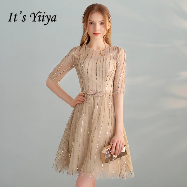 It's YiiYa 2018 Hot O-Neck Fashion Designer Sexy Illusion Elegant Cocktail Gowns Bling Sequind Slim Cocktail Dress LX324