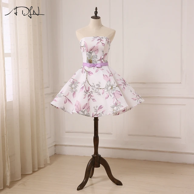ADLN Flower Cocktail Dresses With Bow Off-the-shoulder Sleeveless Mini Prom Party Evening Gowns A-line Back Lace-up