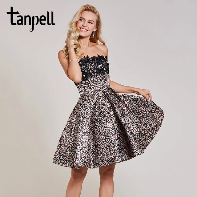 Tanpell strapless cocktail dress black sleeveless appliques knee length a line gown women ruched short party cocktail dresses