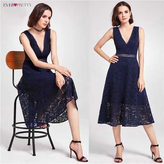 Lace Cocktail Dresses Ever Pretty AS05919 Elegant V-neck High Waist Tea Length Fashionable Affordable Party Dresses for Women