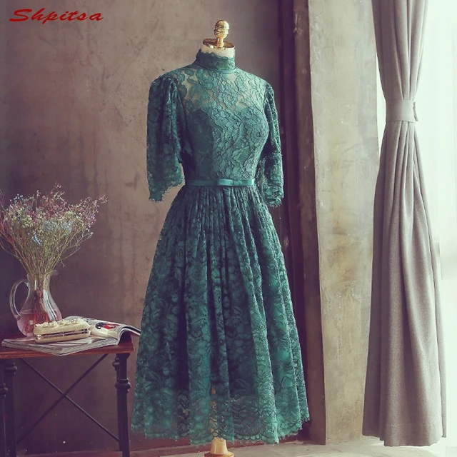 Lace Cocktail Dresses Womens High Neck Prom Coctail Dress for Party Dresses jurk vestidos de coctel renda