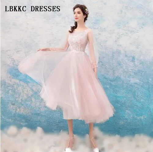Long Sleeves Cocktail Dresses Romantic Champagne Dress Elegant Cocktail Party Dress Vestido De Cocktail 2018
