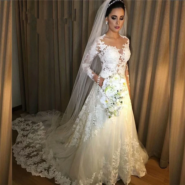 Vestidos de Noiva A Line Lace Wedding Dress 2018 See Through Back Sexy Long Sleeves Wedding Dresses Robe De Mariage Bridal Gowns