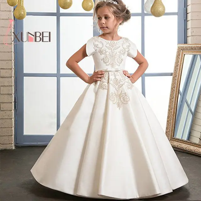 Big Promotion Ivory Appliqued Flower Girl Dresses 2018 Floor Length Girls Pageant Dresses First Communion Dresses