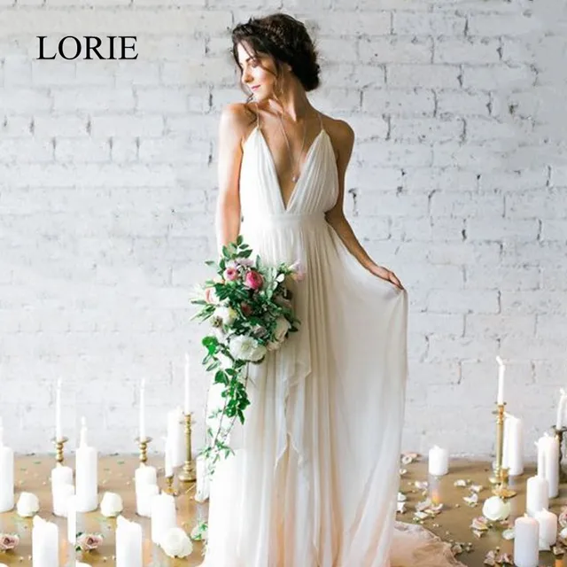 LORIE Simple Boho Wedding Dress Beach 2018 Robe de mariee Plunging Sexy Bridal Dress Chiffon Wedding Dresses Spaghetti Straps