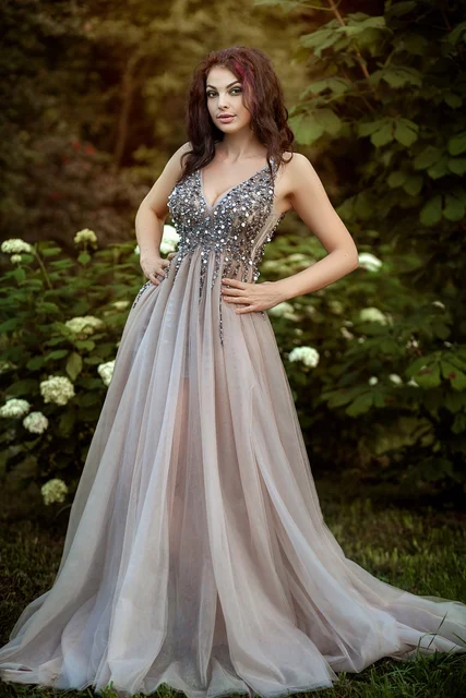 New Arrival Long Prom Dresses Luxury Beaded Sleeveless Crystals Tulle Formal Evening Dress Party Gown Custom