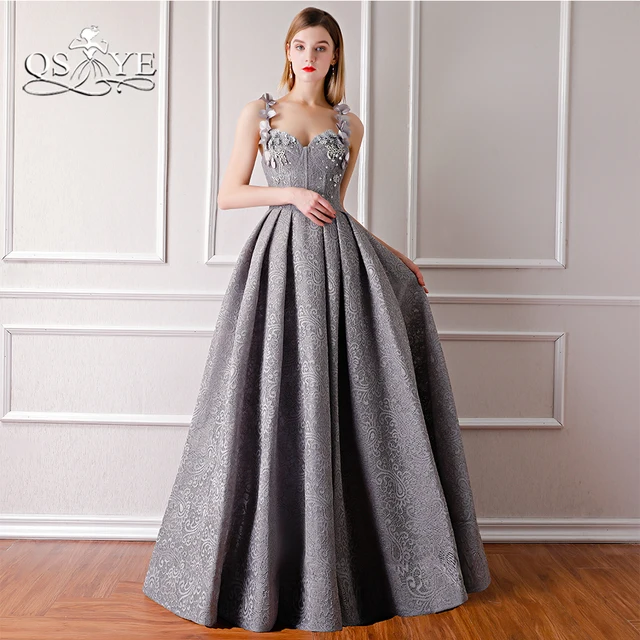 QSYYE 2018 New Gray Long Prom Dresses Robe de Soiree Spaghetti Straps Sweetheart Floor Length Lace Formal Evening Dress Party