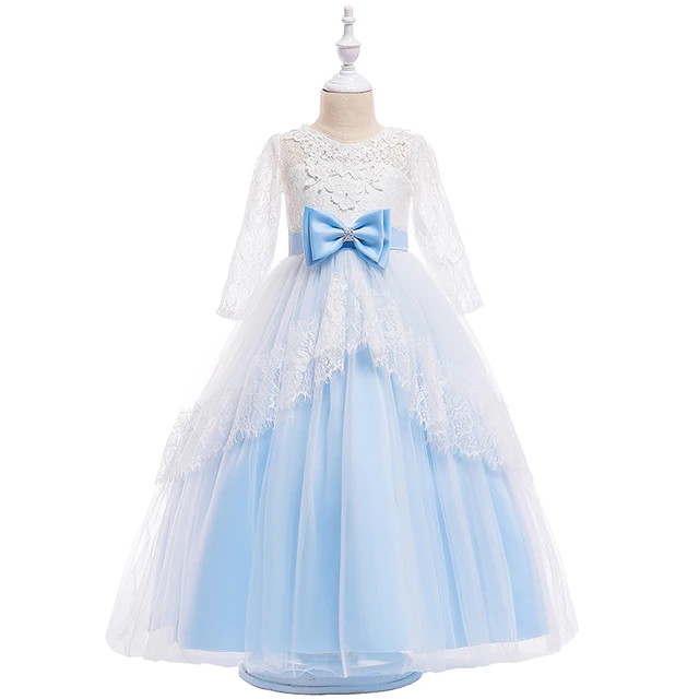 Retail Floral Lace Elegant Princess Flower Girls Dress With Big Long Bow Crystal Bow Teenage Girl Formal Party Prom Dress LP-203