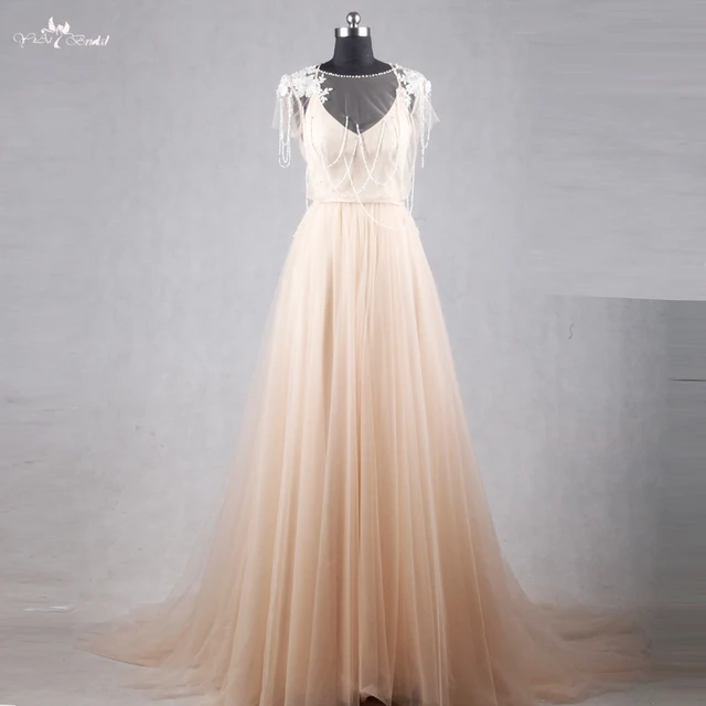 RSW1111 Champagne Backless Vestidos De Novia 2017 Bohemio Boho Wedding Dress