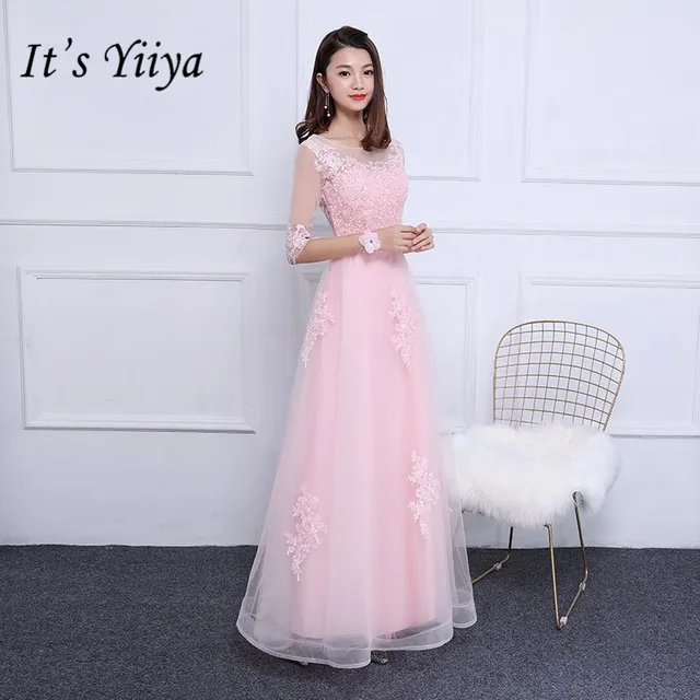 It's YiiYa Hot Half Sleeve O-Neck Prom Dresses Luxury Charming Mesh Floor Length Lace Evening Dress LF006
