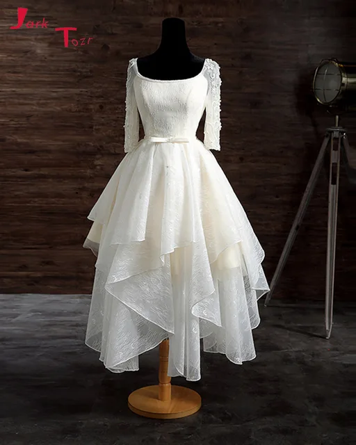 Jark Tozr Real Photo Long Sleeve Backless Tea-Length Bow Bridal Gowns Brautkleid 2018 Alibaba China Little Wedding Dresses DHL