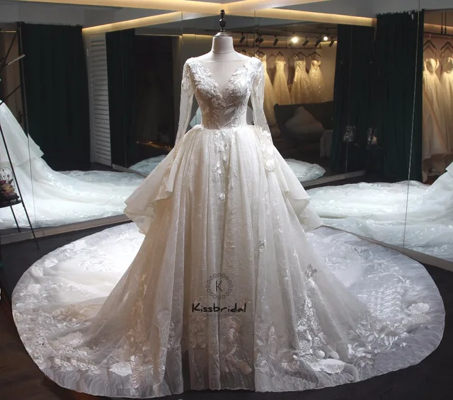 Latest Design Luxurious Wedding Dresses Royal Train Modest Long Sleeve Wedding Gowns vestidos de novia