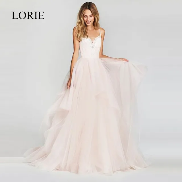 LORIE A Line Wedding Dress 2018 New Arrival Vestido De Noiva Simple Bridal Dress Puffy Tulle Beach Wedding Dresses Lace Top