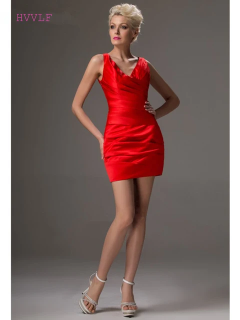 Red 2018 Elegant Cocktail Dresses Sheath V-neck Short Mini Backless Sexy Plus Size Party Homecoming Dresses