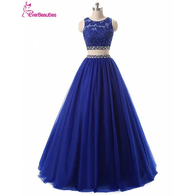 Sexy Two Pieces Prom Dresses 2018 Tulle Beaded Ball Gown Evening Party Dresses Backless Vestidos De Graduacion Vestidos De Baile