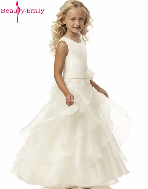 2017 Beauty-Emily Flower Girl Dresses White/Ivory Real Party Communion Dress Little Girls Kids/Children Dress for Wedding
