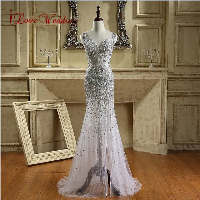 2018 Luxury Crystal Beaded Mermaid Prom Dresses Sexy Open Back Party Dresses Sweetheart Neckline Long Tulle Woman Evening Gowns
