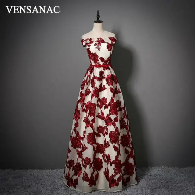 VENSANAC New A Line 2017 Flowers Boat Neck Long Evening Dresses Bow Sleeveless Elegant Sashes Party Prom Gowns