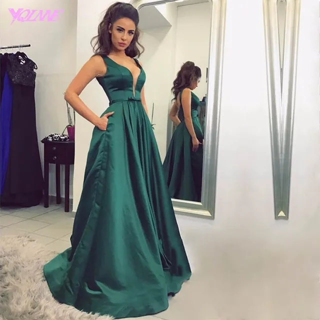 YQLNNE Green Long Prom Dresses Satin Evening Gown Vestido De Festa