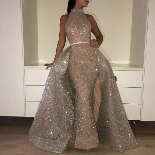Muslim Mermaid Evening Dresses Turkish Arabic Dubai Bling Unique Fabric Evening Gowns Dress For Weddings Kaftan Glitter 2017 New