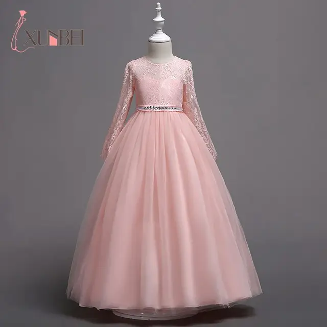 New Arrival Princess Long Sleeves Pink Lace Flower Girl Dresses 2018 Girls Pageant Dress First Communion Dresses Party Gown
