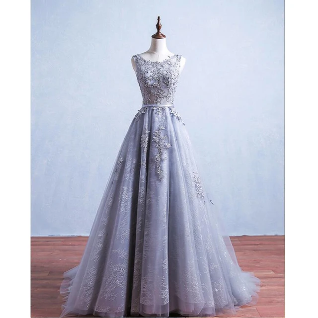 Elegant Gray Sheer Neck Beading Lace Vestidos De Festa Sequins Backless A-line Prom Dresses Robe De Soiree Prom Party Gowns