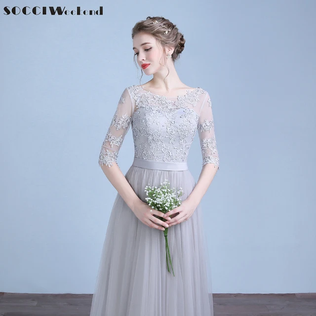 SOCCI Long Evening Dresses 2017 Half Sleeves Lace up back Appliques Lace Homecoming Dress Bridal Formal Wedding Party Gown
