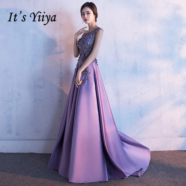 It's YiiYa Elegant O-Neck Sleeveless Backless Evening Dresses High Quality Chapel T Floor Length Dress LX005