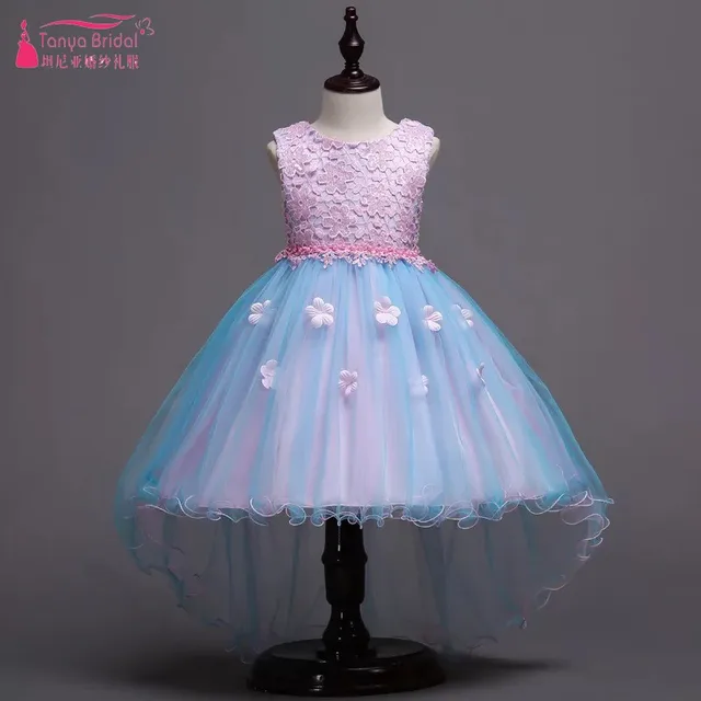 Lace Flower Girl Dresses For Weddings Colorful Pageant Dresses For Girls Formal Kids Party Ball Gown With Detachable Bow DQG431