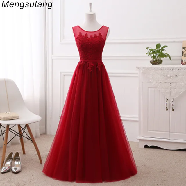 Robe de soiree vestido de festa Wine red lace up with Appliques long dress Elegant bridesmaid dresses Banquet Prom Party Gown