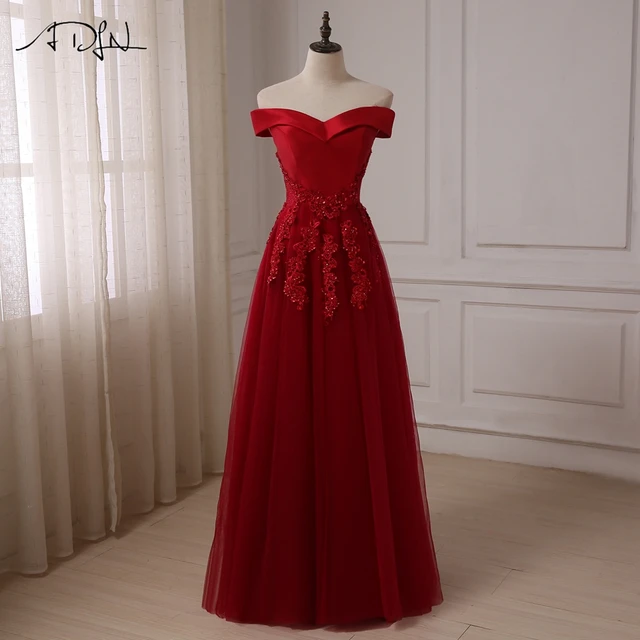 ADLN Burgunday Bridesmaid Dresses Beaded Applique Off the Shoulder A-line Satin/ Tulle Bridesmaid Gowns Wedding Party Dress