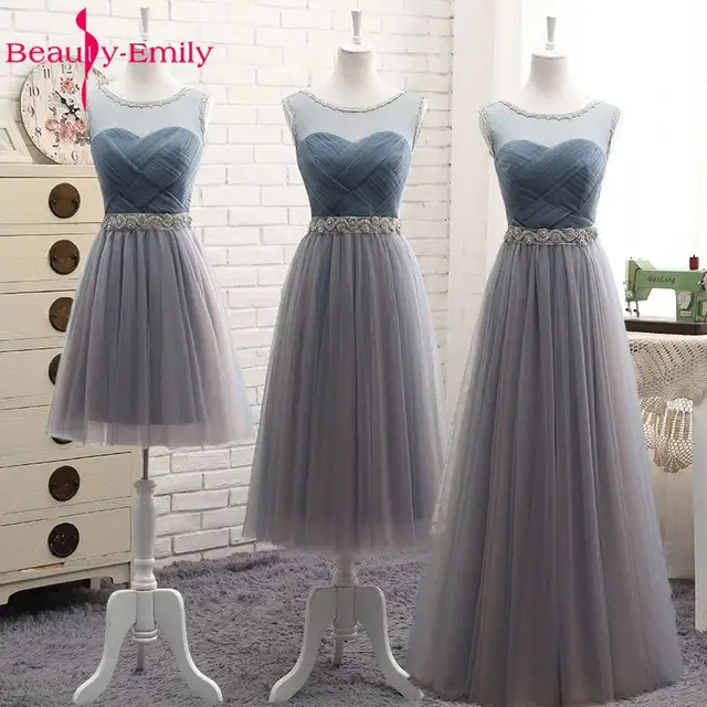 Beauty Emily High Quality Tulle Long Short Bridesmaid Dresses 2018 Formal A-line Vintage Party Prom Dresses Off the Shoulder