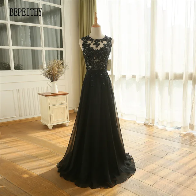 BEPEITHY New Arrival Robe De Soiree A line Chiffon Long Evening Dress Party Elegant Sexy Sheer Back Sleeveless Prom Gown 2018