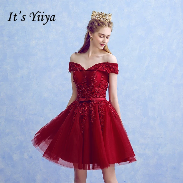 It's YiiYa 2018 New Boat Neck Simple Knee Length Flowers Lace Bow Dinner Bridesmaid Dresses Party Short Formal Dress LX242