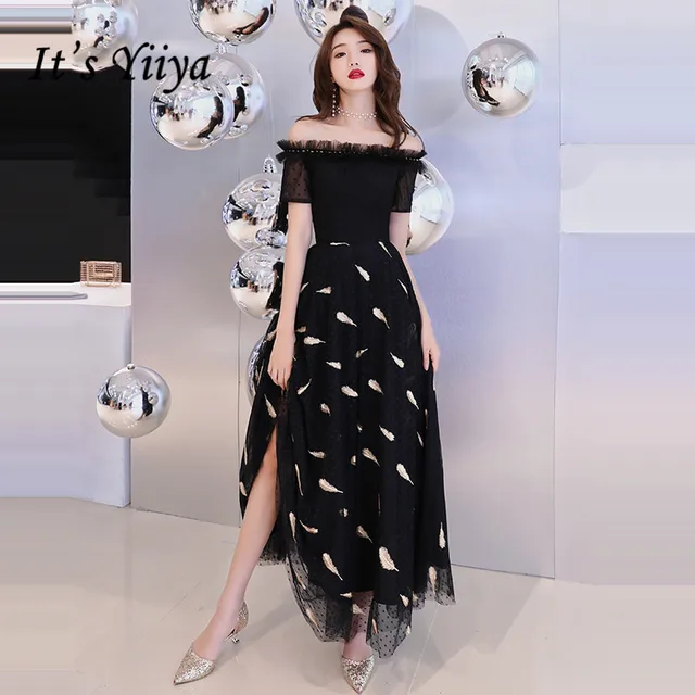 It's YiiYa Evening Dress 2018 Black Boat Neck Embroidery Beading Floor-length Dinner Gowns LX1273 A-line robe de soiree