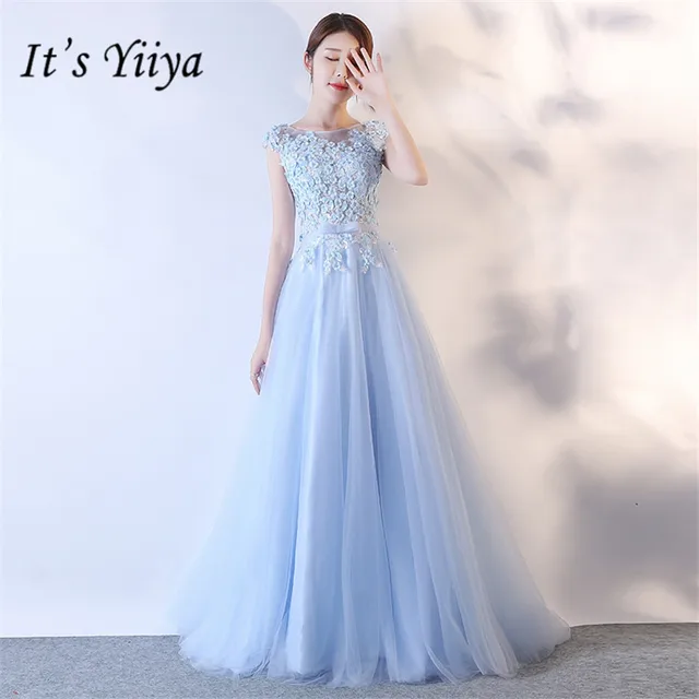 It's YiiYa Summer Sleeveless Mesh Bridesmaid Dresses Elegant Pure Color Slim A-line Frocks H077