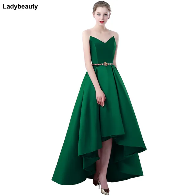 Ladybeauty 2018 Satin dress Party Prom Gown Formal Short Evening Dress Sweetheart High-low Simple Style Gown