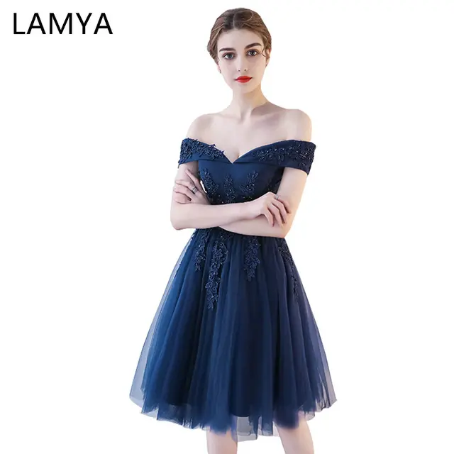 LAMYA Customized Short Evening Dresses Elegant Lace With Beading Formal Party Dress Sexy Lace Up Off The Shoulder robe de soiree