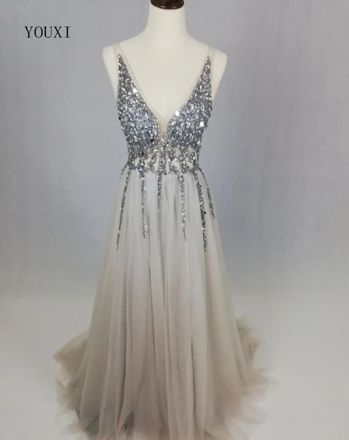 Robe de Soiree Longue New Arrivals Real Image Sexy V-Neck High Side Split Evening Dress 2018 Abendkleider Formal Prom Long