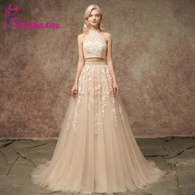 Two Pieces Evening Dresses Long Tulle Appliqued Dresses Bling Evening Gowns Prom Party Gowns Crystal Floor Length